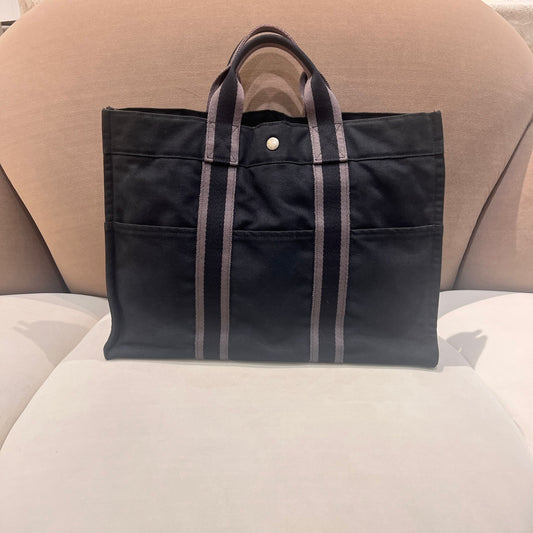 Hermès Vintage Fourre Tout Mm Black Canvas Stripe Tote Bag