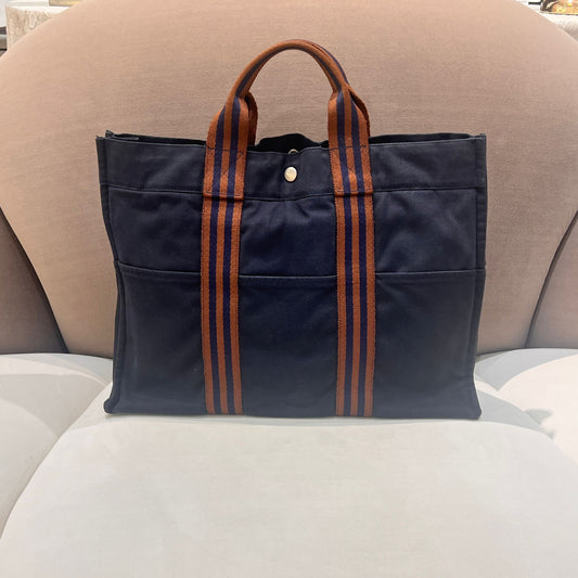Hermès Vintage Fourre Tout Mm Navy Canvas Stripe Tote Bag