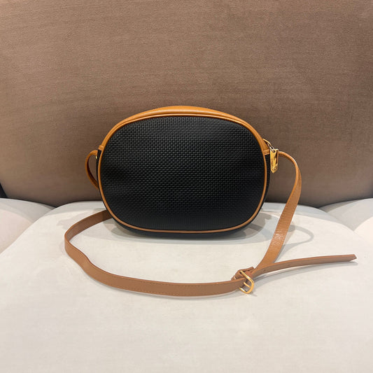 Yves Saint Laurent Vintage Textured Leather Navy Oval Crossbody Shoulder Bag