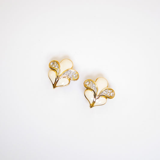 Nina Ricci Vintage White and Rhinestone Golden Clip-on Earrings