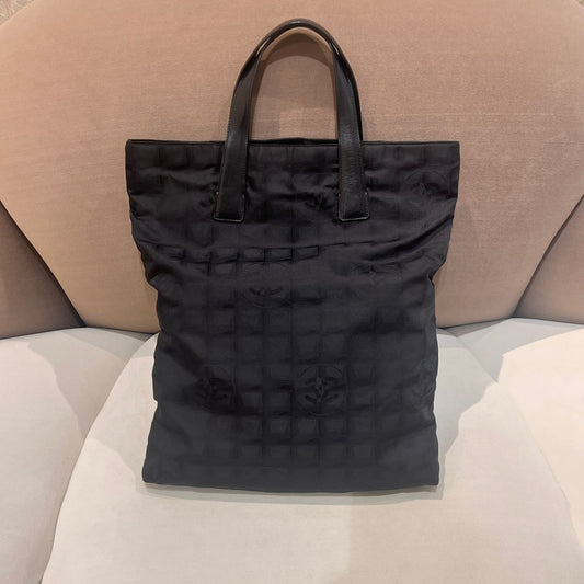 Chanel New Travel Line Black Cc Jacquard Nylon Tote Bag