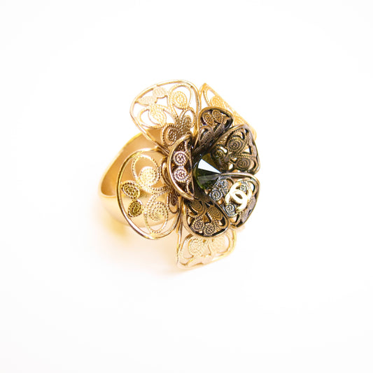 Chanel Vintage CC Logo Flower Motif Golden Ring #12.5