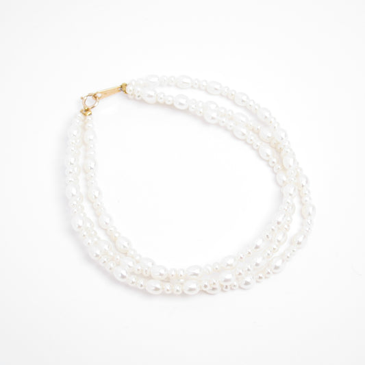 Mikimoto Vintage 3-row Freshwater Pearl Bracelet with K18 Gold Buckle