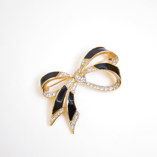 Nina Ricci Vintage Ribbon with Black and Rhinestone Golden Brooch