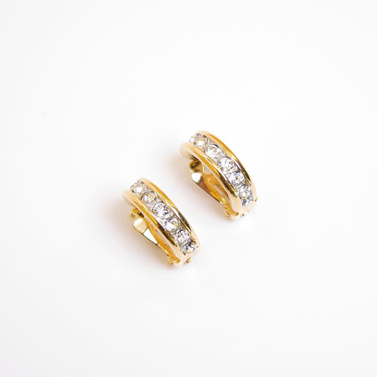 Yves Saint Laurent Vintage Rhinestone Golden Clip-on Earrings