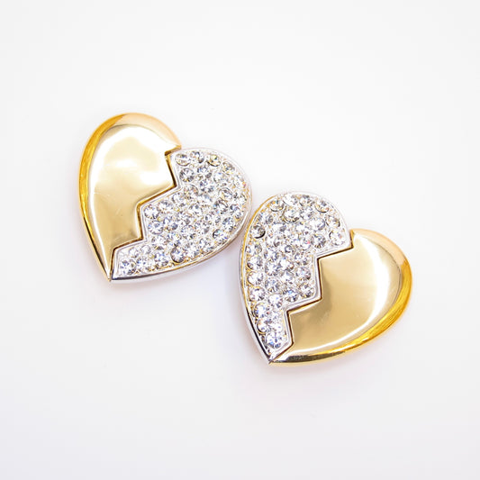 Yves Saint Laurent Vintage Heart Motif Rhinestone and Golden Clip-on Earrings
