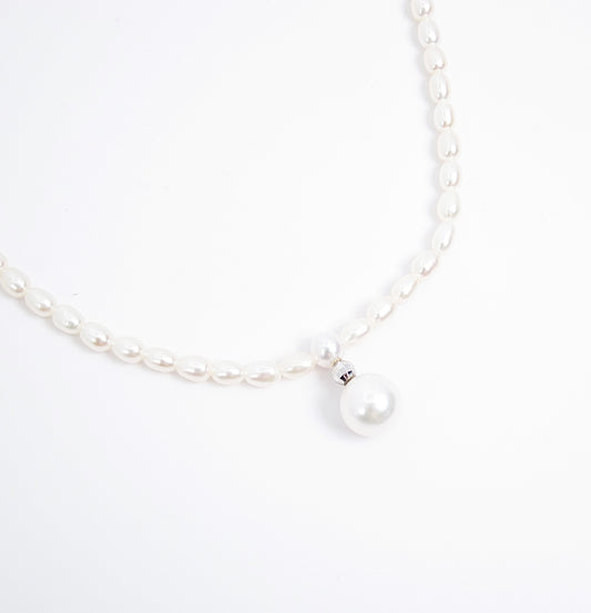 No Brand Vintage Akoya Pearl with Silver Buckle Necklace
