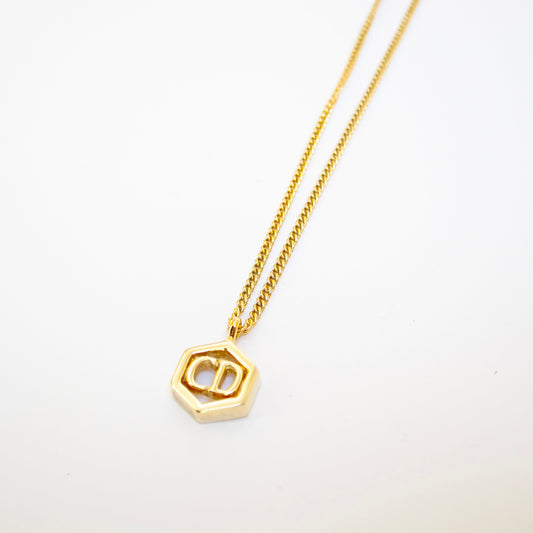 Christian Dior Vintage CD Logo in Hexagon Golden Necklace