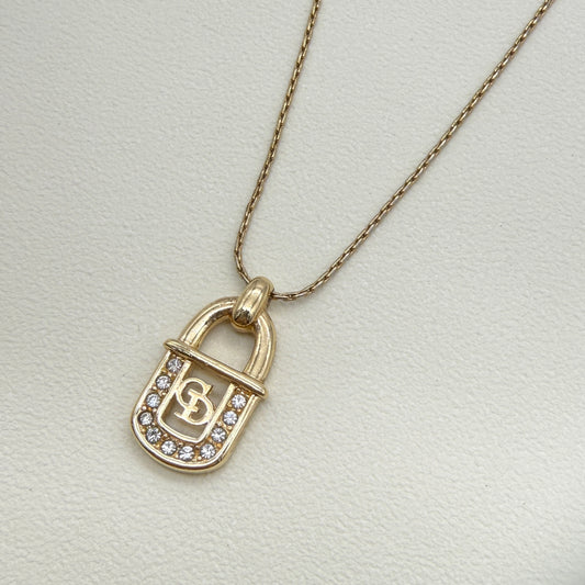 Christian Dior Vintage CD Logo in Lock with Rhinestone Golden Necklace
