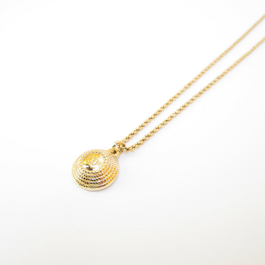 Christian Dior Vintage CD Logo in Circle Pendant Golden Necklace