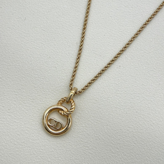 Christian Dior Vintage CD Logo in Circle Golden Necklace