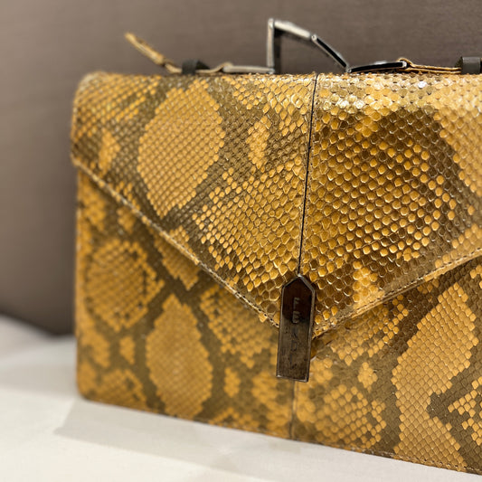 Ferragamo Vintage Gancini Gold Satin Top Handle Bag
