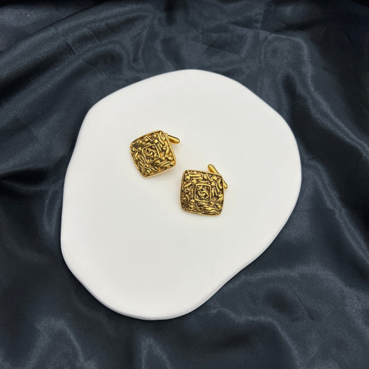 Chanel CC Logo Oval Golden Clip-On Earrings