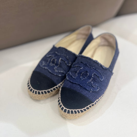 Chanel Vintage Cc Logo Blue Denim Espadrilles (#35)