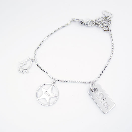Christian Dior Vintage Dior Logo Charm Silver Bracelet