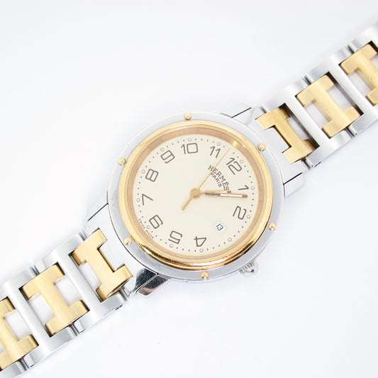 Hermes Vintage Clipper Ivory Dial with Date and H Bracelet Two Tone Watch