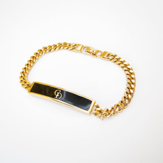 Christian Dior Vintage CD Logo on Black and Golden Bar Bracelet
