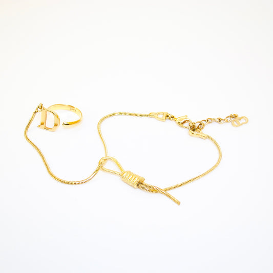 Christian Dior Vintage D Logo Ring with Golden Bracelet