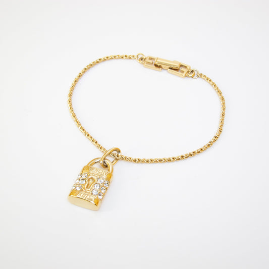 Givenchy Vintage Givenchy Logo on Padlock with Rhinestone Golden Bracelet