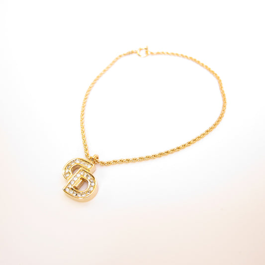 Christian Dior Vintage CD Logo with Rhinestone Golden Bracelet