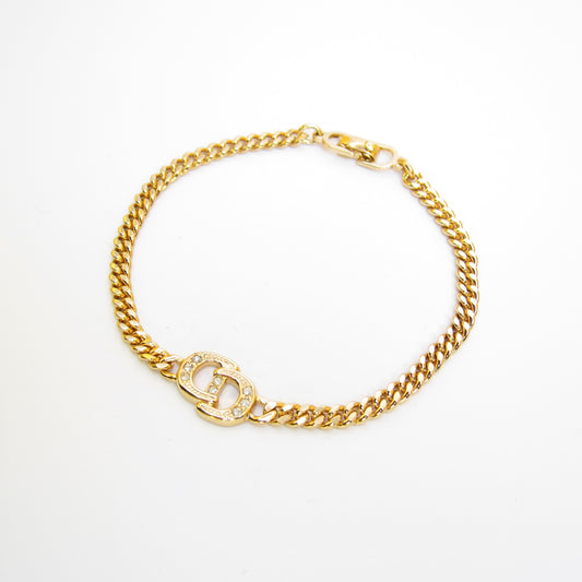 Christian Dior Vintage CD Logo with Rhinestone Golden Bracelet