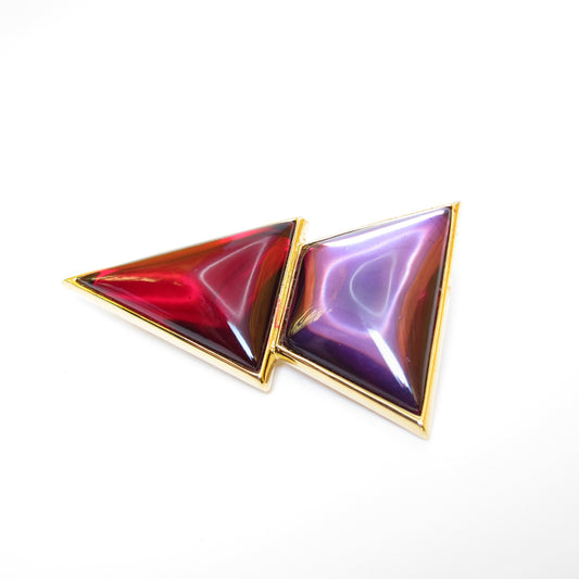 Yves Saint Laurent Vintage Purple and Red Triangle Golden Brooch