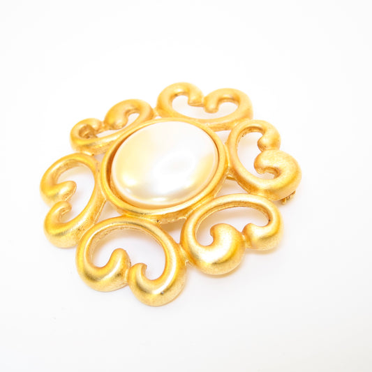Christian Dior Vintage Stylish Pearl and Golden Brooch