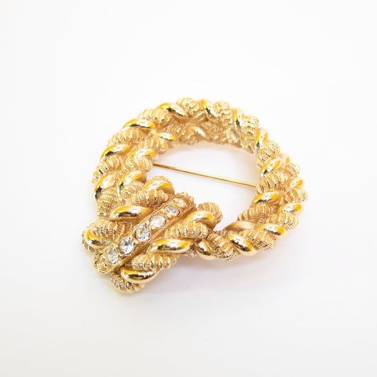 Christian Dior Vintage Stylish Rhinestone Golden Brooch