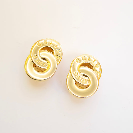 Celine Vintage Celine Logo on Double Circle Golden Clip-on Earrings
