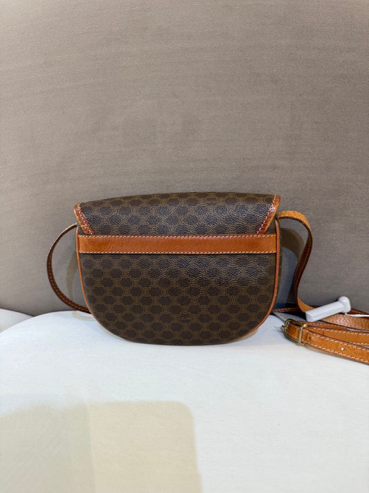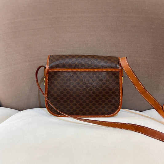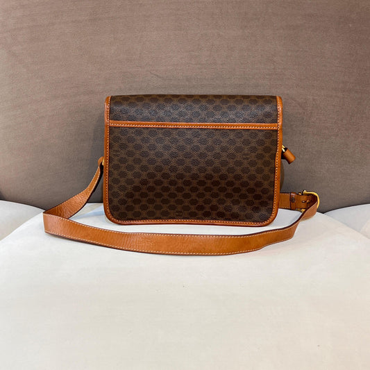 Celine Vintage Macadam Canvas Brown Leather Shoulder Bag