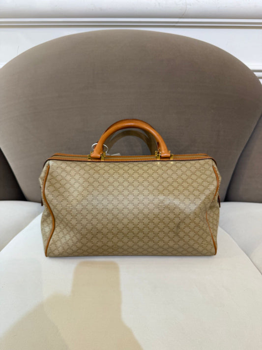 Celine Vintage Macadam Canvas Beige Leather Boston Handbag