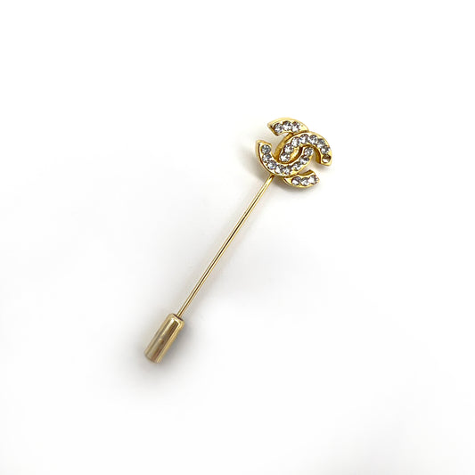 Chanel Vintage Rhinestone CC Logo with Golden Brooch
