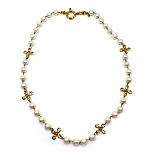 Chanel Vintage Golden CC Logo Motif With Pearl Long Necklace