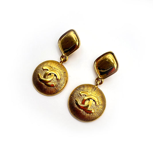 Chanel Vintage CC Logo Golden Clip-On Earrings