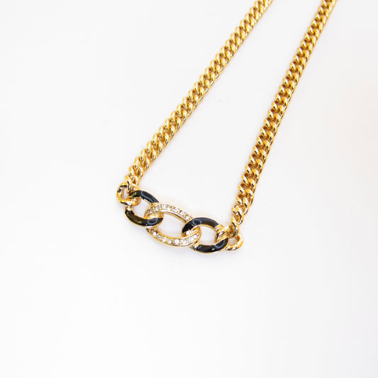 Christian Dior Vintage Black and Rhinestone Golden Necklace