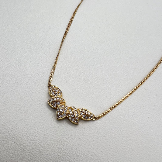 Christian Dior Vintage Leaf Motif Rhinestone Golden Necklac