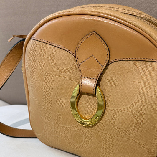 Christian Dior Vintage Golden Oval Logo With Light Brown Shoulder Bag