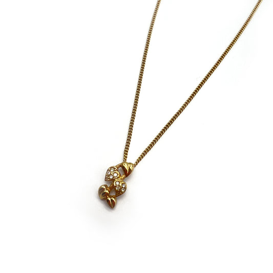 Christian Dior Vintage Ribbon Motif Rhinestone Golden Necklace