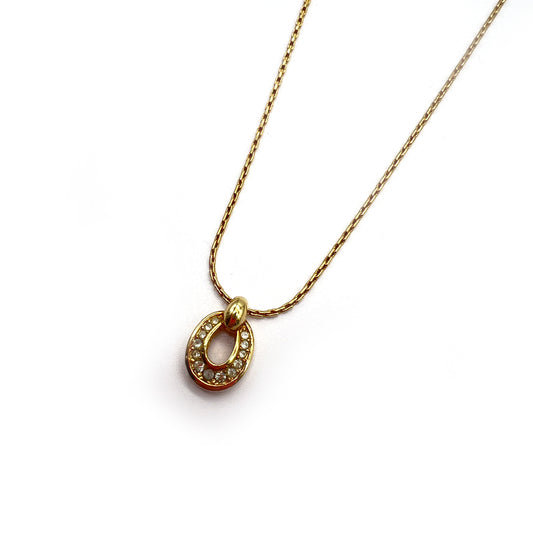 Christian Dior Vintage Rhinestone Heart Shape Golden Necklace