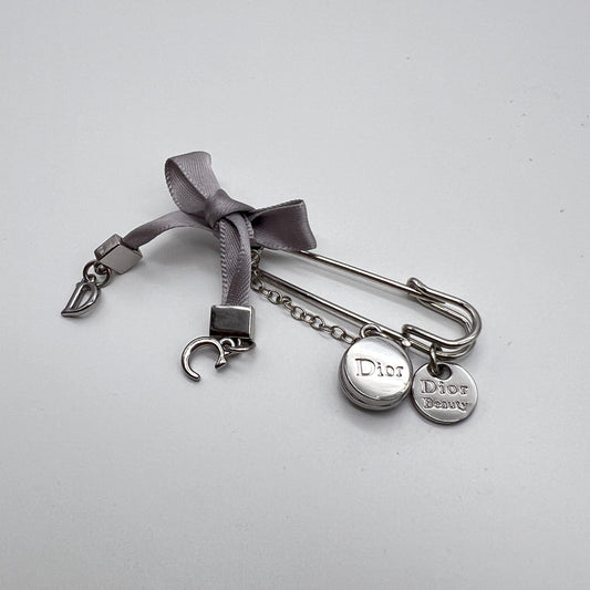 Christian Dior Vintage Cd Logo with Ribbon Silver Brooch