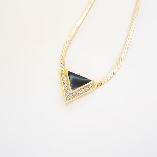 Christian Dior Vintage Triangle Black and Rhinestone Golden Necklace