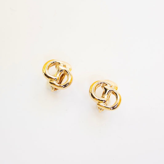 Christian Dior Vintage CD Logo Golden Clip-on Earrings