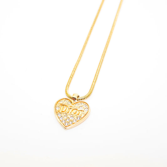 Christian Dior Vintage Dior Logo on Heart with Rhinestone Golden Necklace