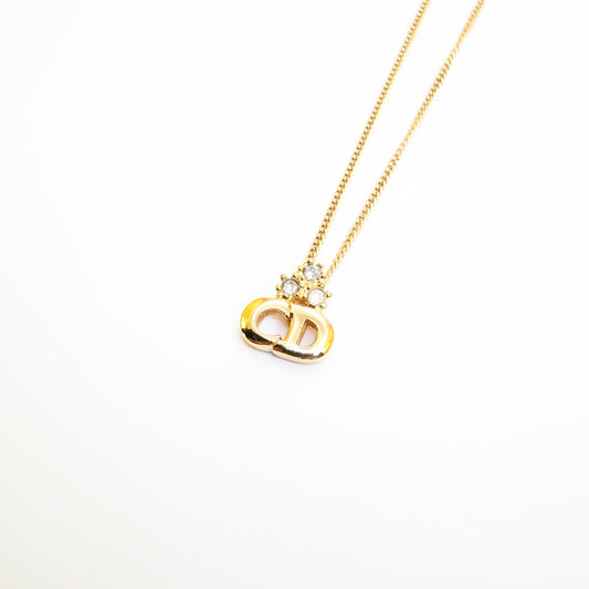 Christian Dior Vintage CD Logo and Rhinestone Golden Necklace