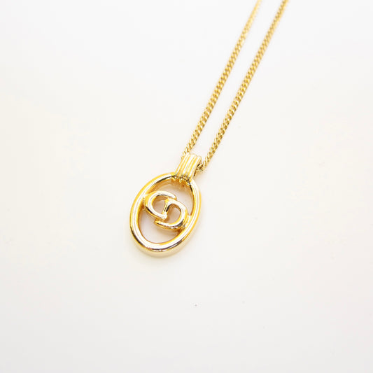 Christian Dior Vintage CD Logo in Oval Shape Golden Necklace