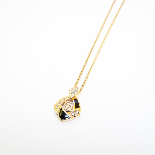 Christian Dior Vintage CD Logo Black and Rhinestone Golden Necklace