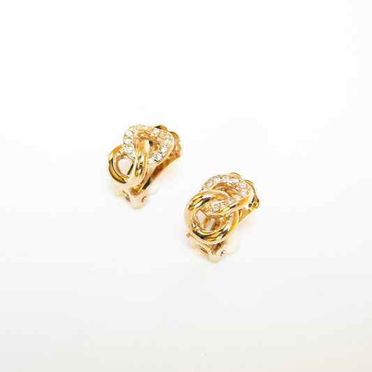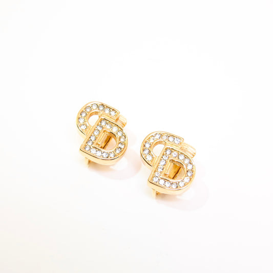 Christian Dior Vintage CD Logo with Rhinestone Golden Clip-on Earrings