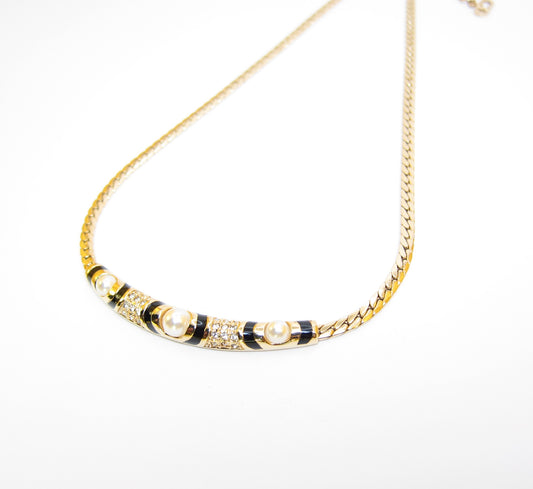 Christian Dior Vintage Pearl and Rhinestone Black and Golden Necklace