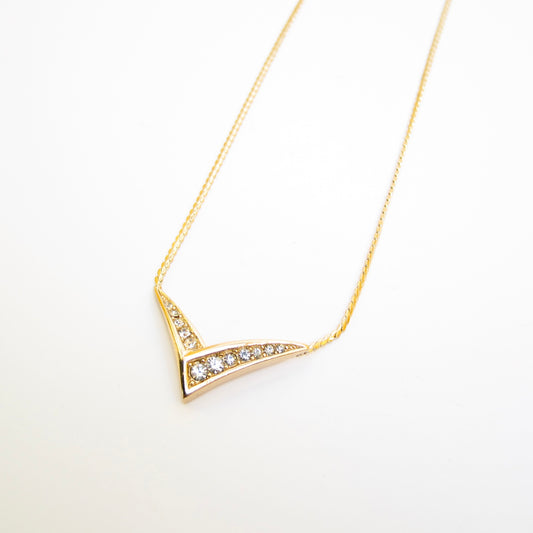Christian Dior Vintage V Shaspe with Rhinestone Golden Necklace