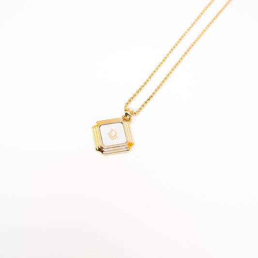 Christian Dior Vintage Dior Logo on Rhombus Silver and Golden Necklace